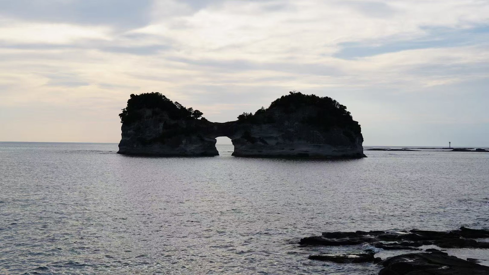 和歌山県白浜海岸に来ると、最も息をのむ風景の一つが、碧い海面に佇む奇岩・円月島(円月島)である。中央に丸い海蝕洞があることから名付けられたこの天然の小島は、『名探偵コナン』劇場版のロケ地でもある。