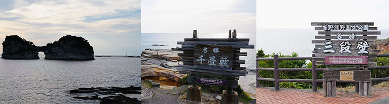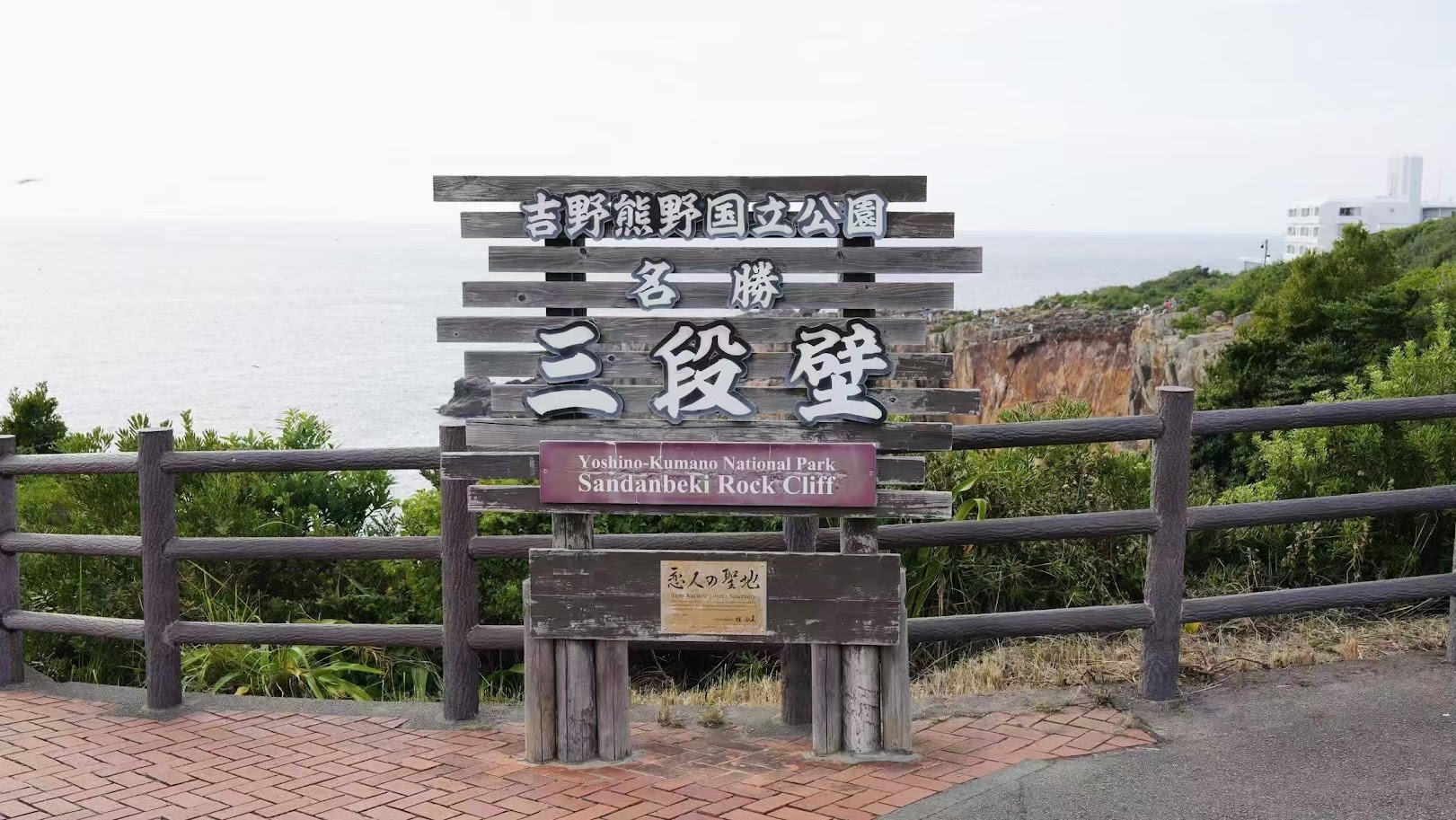 三段壁(Sandanbeki)は、高さ50メートルの海蝕断崖が2キロにわたり続き、荒波が岩壁に激しく打ちつける迫力は圧倒的で、「関西第一の海上絶壁」と称されている。