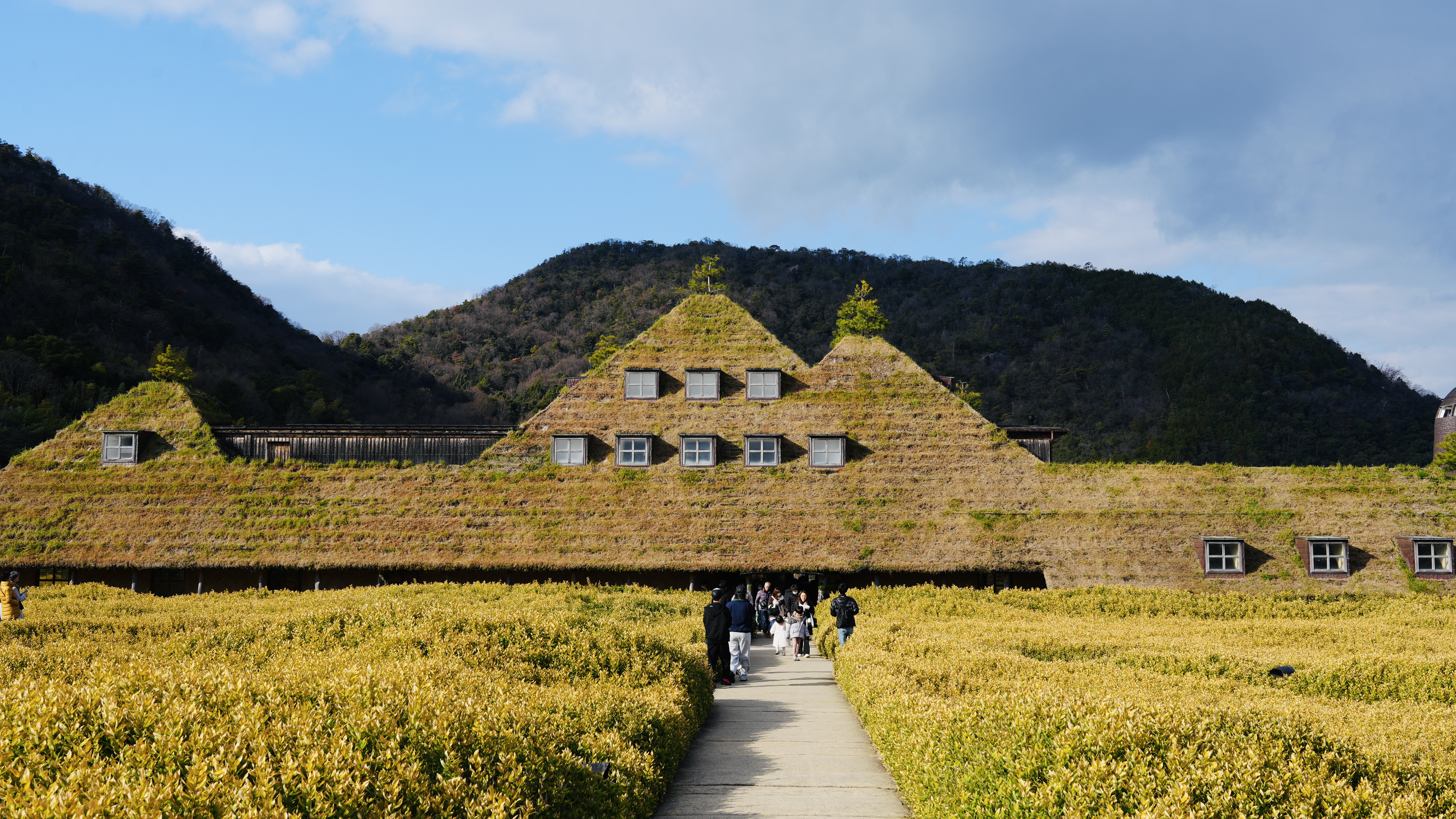 • ラ コリーナ近江八幡:ラ コリーナは滋賀の田園にある童話のような体験型施設です。巨大な茅葺き屋根の建物を中心に、人気洋菓子ブランド「CLUB HARIE」の旗艦工房であり、アーティスト・操上和美による「小さな草人形」の幻想的な舞台でもあります。ここでは、名物のバウムクーヘンや近江牛グルメを味わいながら、丘や草原、アートの中で自然と甘さが溶け合う癒しの力を感じることができます。