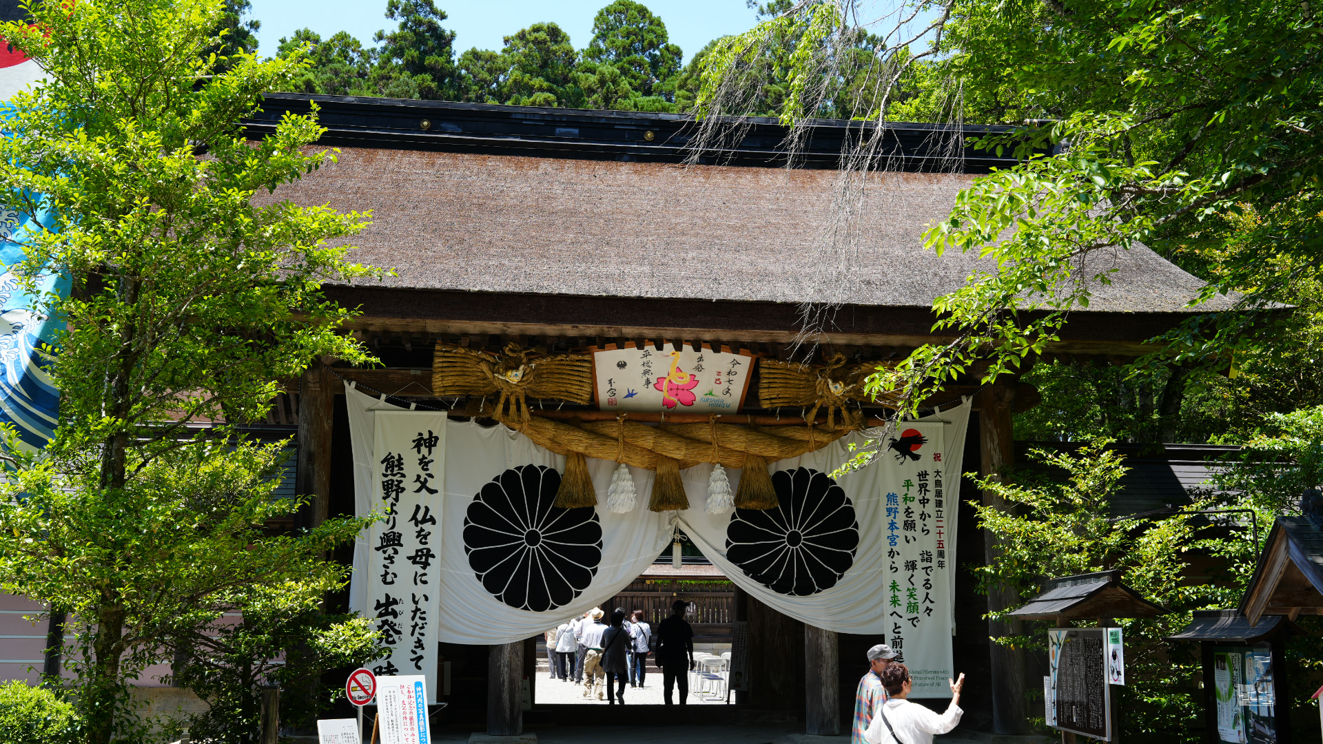 ここは熊野信仰の中心的な聖地であり、古くから多くの天皇や貴族、庶民が参拝に訪れ、「熊野詣」の終着点として崇められてきました。現在の社殿は荘厳な佇まいで山々に囲まれた地に鎮座し、旧社地である「大斎原」には日本最大級の鳥居が今もなお残されており、神聖さと再生の象徴となっています。